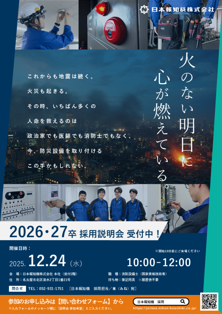 2025.12.03 2026・27年卒 第7回会社説明会開催 2026・27年卒 第7回会社説明会を開催します! 開催日時 2025年12月24日(水)10:00~ 本社会議室にて 詳細は下記をご覧下さい。 また、参加ご希望の方はこちらからお気軽にエントリーください。